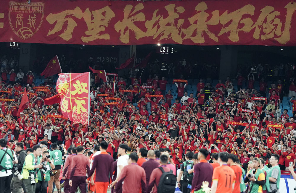3月25日,中國隊(duì)球迷在賽后鼓勵(lì)球隊(duì)。新華社記者 黃宗治 攝