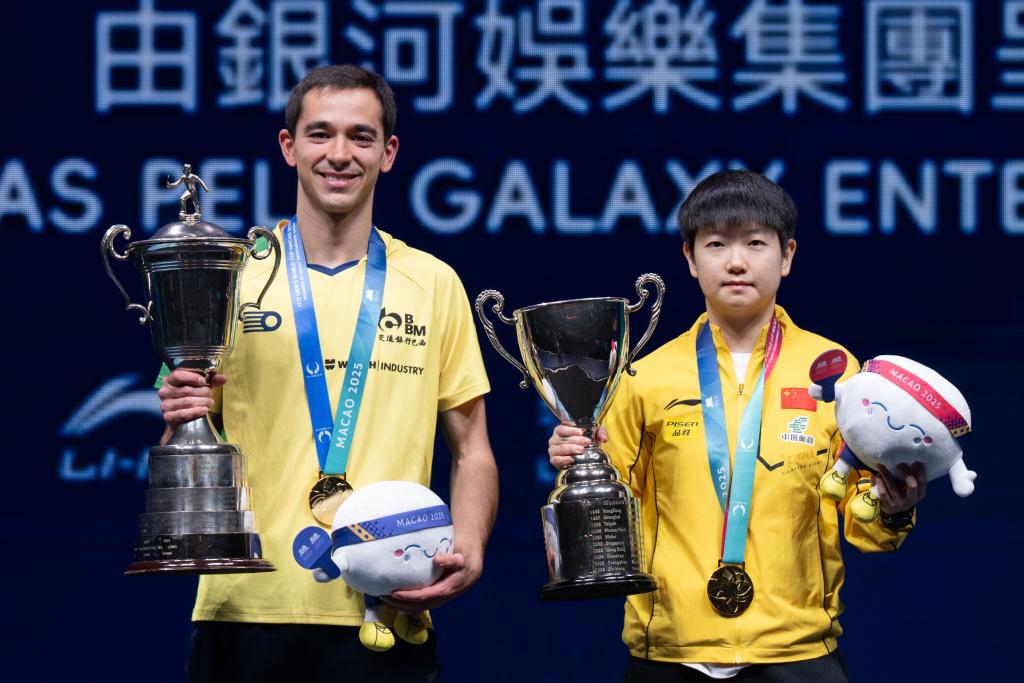 新華社澳門4月20日電(記者齊菲、孟佳)2025年國(guó)際乒聯(lián)男子及女子世界杯20日迎來(lái)收官戰(zhàn)。中國(guó)隊(duì)名將孫穎莎4:0戰(zhàn)勝隊(duì)友蒯曼,成功衛(wèi)冕冠軍。雨果·卡爾德拉諾則以4:1擊敗中國(guó)隊(duì)的林詩(shī)棟,成為首位獲得乒乓球世界杯男單冠軍的巴西運(yùn)動(dòng)員,而這也是中國(guó)男乒自2017年世界杯后,首次丟掉“三大賽”(奧運(yùn)會(huì)、世乒賽、世界杯)單打冠軍。