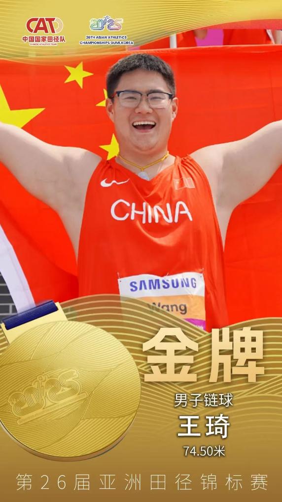 朱亞明在奪冠后。圖源:中國田徑隊(duì) 女子100米決賽中,第三道出發(fā)的梁小靜一路領(lǐng)先,以11秒37的成績率先撞線。繼2013年韋永麗奪冠后,中國隊(duì)選手時(shí)隔12年再度獲得亞錦賽女子百米飛人大戰(zhàn)冠軍。該項(xiàng)目衛(wèi)冕冠軍、杭州亞運(yùn)會(huì)上獲得銀牌的新加坡選手佩雷拉以11秒41的成績排名第二。另一名中國隊(duì)選手朱俊穎位列第七。 當(dāng)日上午率先進(jìn)行的男子鏈球決賽中,中國隊(duì)名將王琦以74米50的成績力壓兩名日本選手奪冠。女子1500米比賽中,“00后”選手李春輝以4分10秒58的成績奪冠,大幅提升個(gè)人最好成績。此外,女子撐桿跳高比賽中,中國隊(duì)選手牛春格以4米48的成績奪冠,她的隊(duì)友徐惠琴收獲銀牌。男子十項(xiàng)全能比賽中,費(fèi)翔以7634分為中國隊(duì)再添一金。