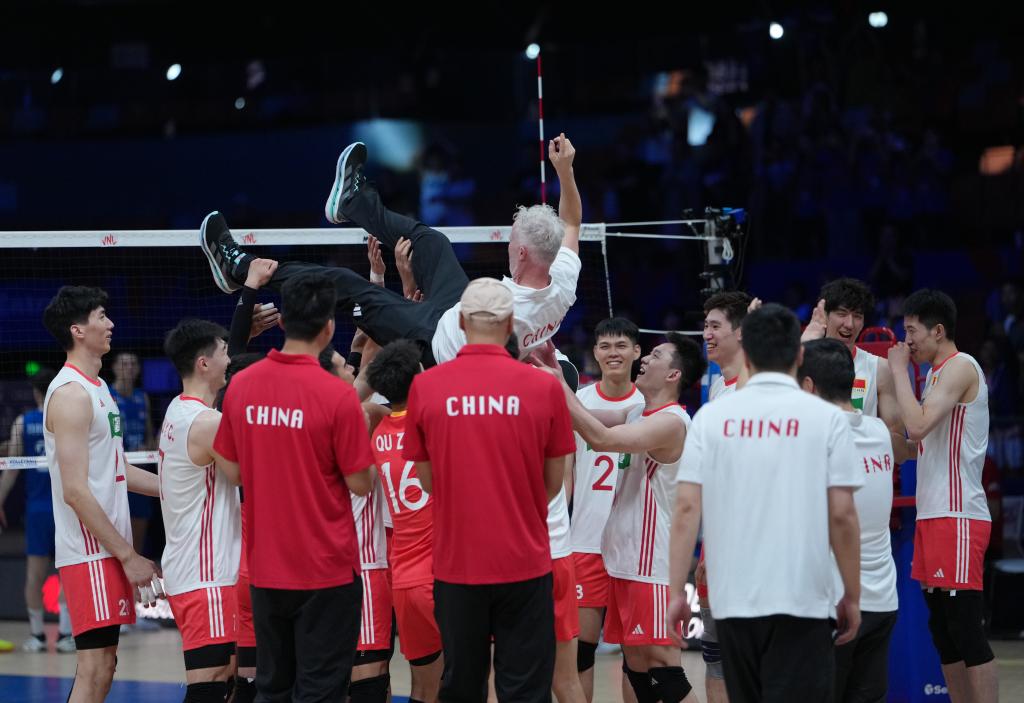 新華社西安6月12日電(記者姚友明、胡佳麗)12日,中國隊在2025世界男排聯(lián)賽(中國西安站)比賽中,3:0戰(zhàn)勝世界排名第10的塞爾維亞隊,在今年該項賽事中首嘗勝績。
