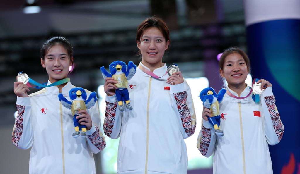 跆拳道也在當日結(jié)束全部比賽,中國隊在該項目上共獲4金2銀3銅。在跆拳道女子團體競技比賽中,由郭清、穆文喆、邢佳妮組成的中國隊延續(xù)強勢表現(xiàn),從16強賽一路以三場2:0橫掃晉級,并在當日決賽中以同樣比分戰(zhàn)勝韓國隊,奪得冠軍。