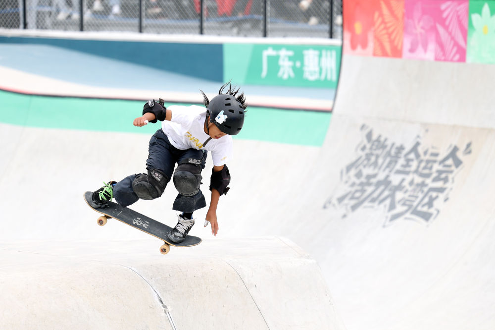 滑板賽場更是少年天下。當(dāng)天決出的4枚金牌中的3枚被青少年選手獲得,摘得獎(jiǎng)牌的12人中有9人尚未成年。當(dāng)天年齡最小的冠軍產(chǎn)生在女子碗池,13歲的廣東選手鄒明珂以0.32分的微弱優(yōu)勢反超12歲的山東選手孟令妍,拿下金牌。