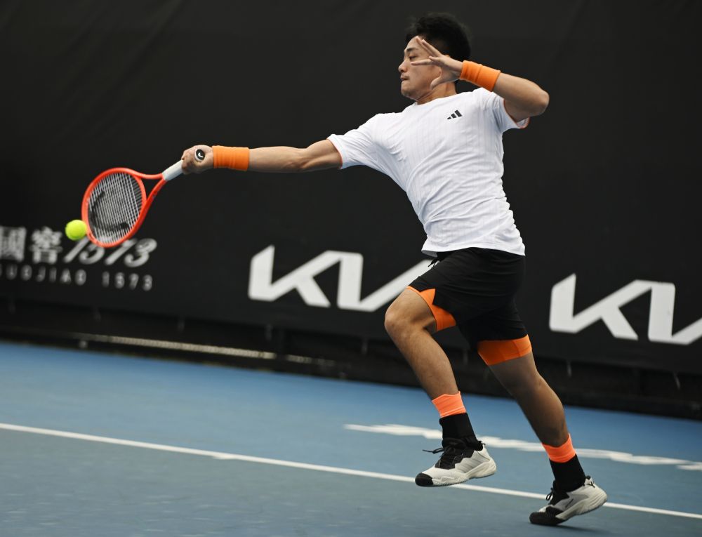 1月13日,吳易昺在比賽中回球。當(dāng)日,在澳大利亞墨爾本進行的2026年澳大利亞網(wǎng)球公開賽男子單打資格賽首輪比賽中,中國選手吳易昺2:0戰(zhàn)勝美國選手克魯格,晉級資格賽第二輪。新華社發(fā)(王申攝)