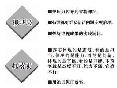 特別強調(diào):在全面從嚴治黨中,紀律檢查機關擔負著特殊重要職責。各級黨委要切實加強對黨風廉政建設和反腐敗斗爭的領導,切實加強對紀委開展工作的支持和領導,在政治上、工作上、生活上關心愛護紀檢監(jiān)察干部,為他們開展工作創(chuàng)造條件,做紀檢機關和紀檢干部的堅強后盾。各級紀檢監(jiān)察機關要找準職責定位,強化監(jiān)督執(zhí)紀問責,增強看齊意識,對照“三鐵”標準,持續(xù)深化“三轉”,聚焦主業(yè)主責,加強自身建設。