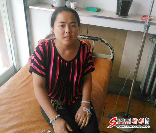 圖為石松梅因闌尾炎復(fù)發(fā)在診所打點(diǎn)滴