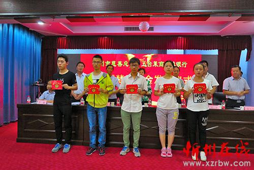 本報訊 在新學期即將來臨之際,為了幫助今年考上大學的寒門學子順利走進大學校門,忻州市慈善總會近日啟動了“金秋助學、愛心圓夢”活動。8月23日下午,忻州市慈善總會聯(lián)手五臺縣萊商村鎮(zhèn)銀行,向10名品學兼優(yōu)、今年考上一本以上大學的五臺籍貧困應屆考生每人發(fā)放助學金5000元。