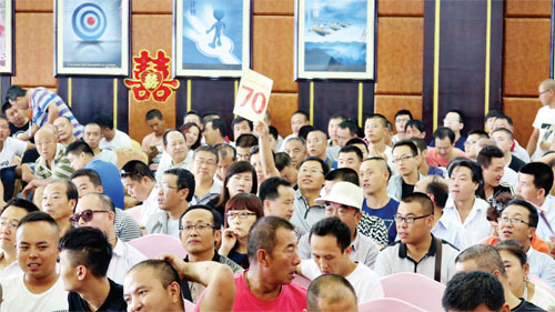 拍賣會上,每輛車的照片、車況、實時價格都出現(xiàn)在了大屏幕上,眾多競拍者頻頻舉牌,隨著拍賣師的一次次落槌,一輛輛公車依序被成功拍賣。(實習記者 郭浩東 攝)
