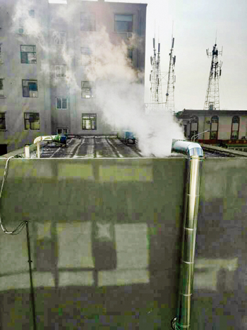 圖1為城區(qū)榮鈺苑小區(qū)院內(nèi)一飯店,四個(gè)排氣煙筒發(fā)出的噪音讓小區(qū)周邊居民無法正常休息,排放出的油煙散發(fā)出嗆人的味道,住戶沒法開窗戶,希望相關(guān)部門管理。一網(wǎng)友攝
