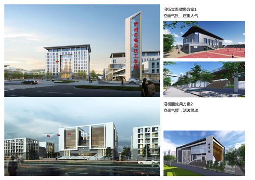 我們本著國(guó)匠精神-九宮格布局、山水格局-背山面水、四水歸堂的設(shè)計(jì)理念,團(tuán)結(jié)上學(xué)、振興技校的精神,努力將本項(xiàng)目打造成為忻州市的新名片,圓技校學(xué)生一個(gè)大學(xué)夢(mèng)。我們注重整體空間的舒適性、藝術(shù)性,不強(qiáng)調(diào)過(guò)分統(tǒng)一。設(shè)計(jì)中注重細(xì)節(jié)處理和學(xué)生們行為模式的考慮;將環(huán)境氣氛和設(shè)施布置的更具有靈活性、親和力,適應(yīng)寬松、生活化的教學(xué)模式。