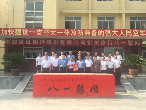7月31日,八一建軍節(jié)來臨之際,忻州分行劉昱星行長攜紀委書記陳慶鵬、副行長趙彤、高級客戶經(jīng)理王平、副行長郝翀平及部分部門負責人前往空軍某部開展“軍銀攜手,共建同行”八一慰問活動,并遞交慰問信和慰問品。