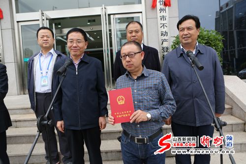 本報訊 9月27日上午,我市舉行不動產(chǎn)登記局、不動產(chǎn)登記中心揭牌暨市本級首本不動產(chǎn)權證書頒發(fā)儀式。省國土廳副廳長武耀文、副市長武憲堂參加儀式。