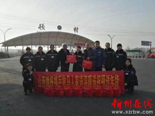 這次在山西晚報送溫暖行動的倡導下,他又組織了這次慰問活動,慰問對象為忻州市境內(nèi)的高速路頓村女子收費站。用于進軍的話來說:她們的工作真的很辛苦,作為女人更辛苦,一方面要認真的工作24小時的值守,回到家還得的操勞家務,每次路過都覺得這些姑娘們很不容易,快過年了,我也沒什么能做的,給她們送點小年貨是我的一點心意。