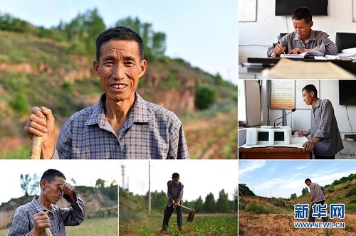 董留照,男,1949年出生,山西省長(zhǎng)治市武鄉(xiāng)縣韓道溝村人,現(xiàn)任韓道溝村黨支部書(shū)記。近年來(lái),董留照帶領(lǐng)村民大力發(fā)展梅杏種植、家禽養(yǎng)殖,改善村容村貌。2018年,韓道溝村實(shí)現(xiàn)整村脫貧,村民年人均收入達(dá)到4500多元。 左上:董留照肖像;右上:董留照在村委會(huì)整理材料;右中:董留照在村委會(huì)通過(guò)廣播向村民宣傳農(nóng)業(yè)政策;右下:董留照在地里松土;下中:董留照在地里忙碌;下左:董留照擦拭額頭上的汗水(拼版照片,6月10日攝)。 地處晉東南的山西省長(zhǎng)治市,位于由太行山、太岳山環(huán)繞而成的上黨盆地中。在群山中、崖壁上,許多村莊自然條件惡劣,基礎(chǔ)設(shè)施落后,脫貧致富是大山深處人們的迫切心愿。 近年來(lái),一場(chǎng)場(chǎng)脫貧攻堅(jiān)戰(zhàn),在一個(gè)個(gè)深山村打響。政府全力探索脫貧路徑的同時(shí),山區(qū)百姓因地制宜,靠自己的雙手和智慧走上致富路,交出了一份扎實(shí)的脫貧答卷。 記者在太行山、太岳山一路尋訪,記錄下多位70歲老人的生活。這些共和國(guó)的同齡人,親歷了山鄉(xiāng)的巨變,見(jiàn)證著長(zhǎng)治山區(qū)脫貧攻堅(jiān)偉大工程的一步步推進(jìn)。 新華社記者 詹彥 攝