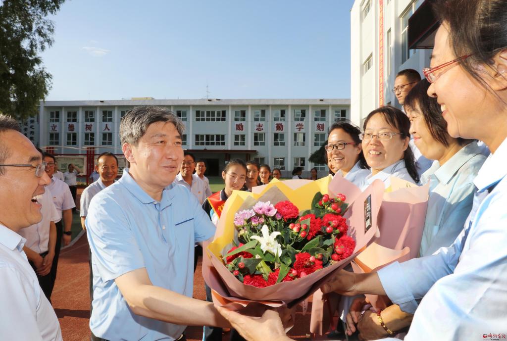 每到一處,朱曉東都向教師們致以節(jié)日問(wèn)候。長(zhǎng)征小學(xué)西校區(qū)是一所高標(biāo)準(zhǔn)規(guī)劃、高水平建設(shè)的新建學(xué)校,今年秋季學(xué)期投入使用。朱曉東察看電子圖書閱覽等教學(xué)新設(shè)施,了解學(xué)校開設(shè)的書法、歌唱、手工、足球、乒乓球、跆拳道、機(jī)器人組裝等特色教育課程,隨機(jī)檢查學(xué)生飲用水機(jī)具,向從基層選拔聘用的優(yōu)秀教師代表贈(zèng)送書籍,勉勵(lì)大家珍惜崗位,肩負(fù)起時(shí)代賦予的重任,全心全意培養(yǎng)好人才。具有40多年歷史的忻州六中辦學(xué)底蘊(yùn)厚重,近年來(lái)與時(shí)俱進(jìn)提升教學(xué)能力。朱曉東實(shí)地了解學(xué)校發(fā)展情況后,一一為教師代表獻(xiàn)上鮮花,感謝大家辛勤付出,希望學(xué)校越辦越好,讓孩子們?cè)趯W(xué)校有更多收獲。忻州高級(jí)中學(xué)教學(xué)設(shè)施先進(jìn),教師隊(duì)伍素質(zhì)高、經(jīng)驗(yàn)豐富,今年學(xué)校畢業(yè)班高考再次取得好成績(jī)。朱曉東詳細(xì)了解學(xué)校歷史和往屆學(xué)生成就,鼓勵(lì)教師們放長(zhǎng)眼光,對(duì)照更高標(biāo)準(zhǔn)繼續(xù)努力,為忻州增光添彩。