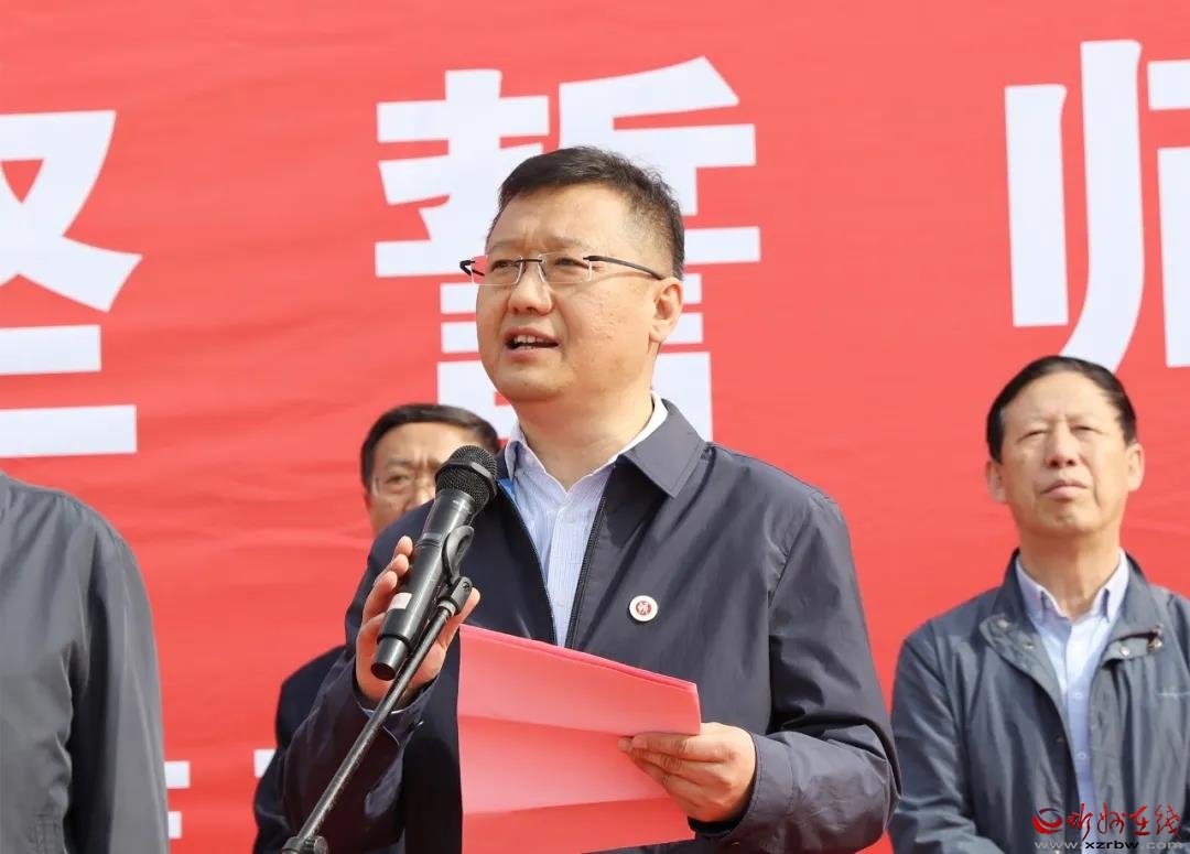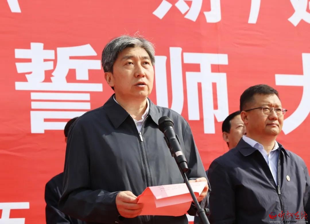 本報(bào)訊 (記者任逢春)5月11日,忻州師范學(xué)院新校區(qū)(一期)建設(shè)搬遷百日攻堅(jiān)誓師大會(huì)舉行,進(jìn)一步激勵(lì)全體參建人員凝心聚力,緊抓施工黃金期,大干100天,確保忻州師院新校區(qū)9月份前如期順利投入使用。市長朱曉東出席活動(dòng)并提出工作要求。忻州師院黨委書記王軍致辭。市政府一級(jí)巡視員武憲堂主持誓師大會(huì)。忻州師院院長張虎芳,市政府副市長、秘書長郭寶厚等出席大會(huì)。市直相關(guān)部門負(fù)責(zé)人,山西建投、山西建工職工代表,忻州師院師生代表等參加大會(huì)。、