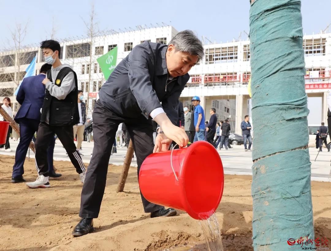 誓師大會(huì)后,與會(huì)人員共同為師院新校區(qū)植樹綠化。