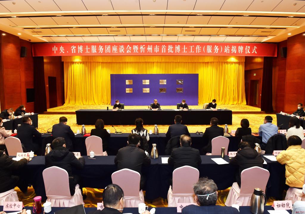 1月10日,中央、省博士服務團座談會暨忻州市首批博士工作(服務)站揭牌儀式舉行。市委書記朱曉東出席并講話。市委常委、組織部部長張敏主持,市領導崔崢嶺、王建峰出席。