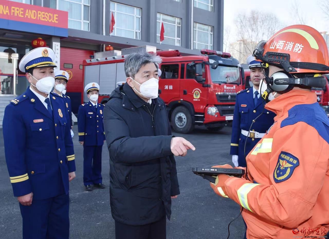 在九源街特勤消防救援站,朱曉東實(shí)地參觀了消防救援隊(duì)伍的工作、訓(xùn)練、生活情況,深入了解消防救援隊(duì)伍人員編制、執(zhí)勤力量、裝備建設(shè)、后勤保障等情況,聽(tīng)取消防裝備性能用途介紹。他高度肯定了消防救援隊(duì)伍為維護(hù)全市社會(huì)形勢(shì)安全穩(wěn)定、保衛(wèi)人民群眾生命財(cái)產(chǎn)安全做出的積極貢獻(xiàn),向全體消防救援人員致以節(jié)日的祝福、表達(dá)親切的慰問(wèn)。希望大家繼續(xù)發(fā)揚(yáng)光榮傳統(tǒng)和優(yōu)良作風(fēng),節(jié)假日期間堅(jiān)守崗位,有效防范遏制各類消防安全事故發(fā)生,為健康護(hù)航、為生命“守歲”,力爭(zhēng)萬(wàn)無(wú)一失、安然無(wú)恙,確保廣大市民過(guò)一個(gè)安安全全、歡歡喜喜的春節(jié)。市委、市政府將一如既往關(guān)心支持消防救援工作和隊(duì)伍建設(shè)發(fā)展,助力建設(shè)應(yīng)急救援主力軍,努力為平安忻州建設(shè)添磚加瓦、再立新功。