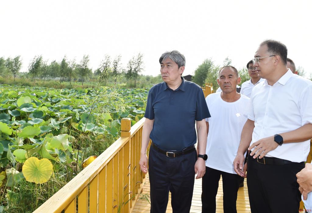 在吉福寺農(nóng)場,朱曉東深入田間地頭實地查看農(nóng)作物長勢,與農(nóng)場負責人面對面交流,仔細詢問農(nóng)產(chǎn)品品種、畝產(chǎn)量、耕種模式、農(nóng)旅融合發(fā)展等情況。他指出,要加快轉變發(fā)展觀念,立足農(nóng)場資源稟賦,找準農(nóng)旅融合發(fā)展的切入點,把旅游產(chǎn)業(yè)和農(nóng)業(yè)產(chǎn)業(yè)有機結合,高標準高品質(zhì)打造有鄉(xiāng)村氣息的參與式、觀光式和體驗式旅游產(chǎn)品。要充分挖掘鹽堿地綜合利用潛力,因地制宜抓好技術推廣、品種選育等工作,大力探索鹽堿地治理改良的有效方法,深度做好鹽堿地特色農(nóng)業(yè)大文章。