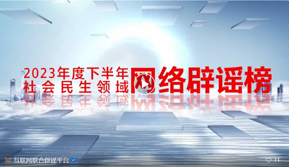 為抵制網(wǎng)絡(luò)謠言,清朗網(wǎng)絡(luò)空間,維護(hù)網(wǎng)民權(quán)益,中央網(wǎng)信辦舉報(bào)中心聯(lián)合中國(guó)科協(xié)科普部在組織專家評(píng)審基礎(chǔ)上,針對(duì)食品安全、應(yīng)急安全、生態(tài)環(huán)境、公共政策等群眾關(guān)切的社會(huì)民生領(lǐng)域謠言和誤區(qū),共同發(fā)布《2023年度下半年社會(huì)民生領(lǐng)域網(wǎng)絡(luò)辟謠榜》。