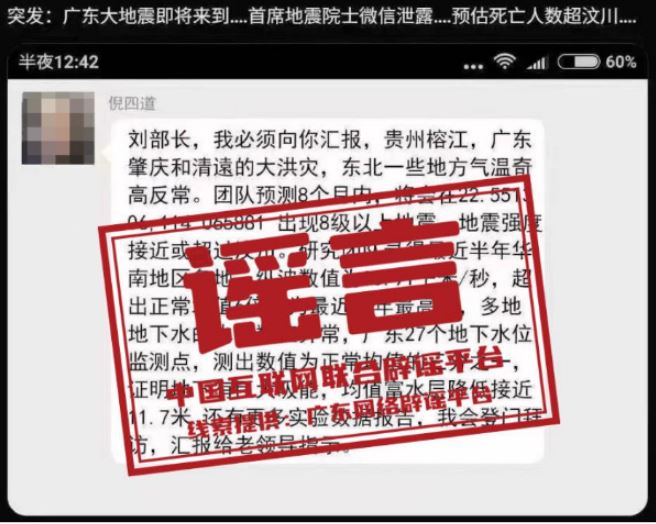 辟謠:網(wǎng)傳院士預(yù)測廣東將發(fā)生8級以上大地震?謠言!已報警