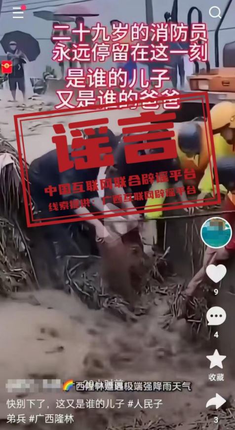 辟謠:網(wǎng)傳“一名消防員在廣西隆林抗洪救援任務(wù)中犧牲”為不實信息