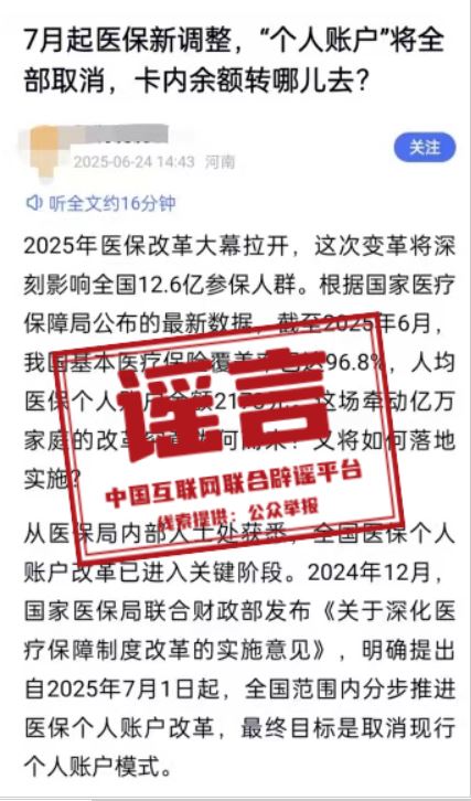 辟謠:警惕!“醫(yī)保‘個人賬戶’將全部取消”系舊謠新傳