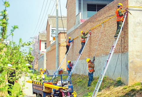 四月八日,施工人員在運城市鹽湖區(qū)上郭鄉(xiāng)中陳莊村架設天然氣管道。該區(qū)大力推進清潔能源建設推廣步伐,加快“煤改氣”“煤改電”重點民生項目工程建設,對農村現(xiàn)有住宅進行節(jié)能改造,提高保溫隔熱效能。(任志堅攝)