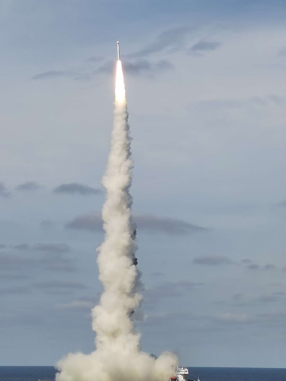 9月15日,長征十一號運(yùn)載火箭在黃海海域,“一箭九星”發(fā)射成功(王偉童 攝)