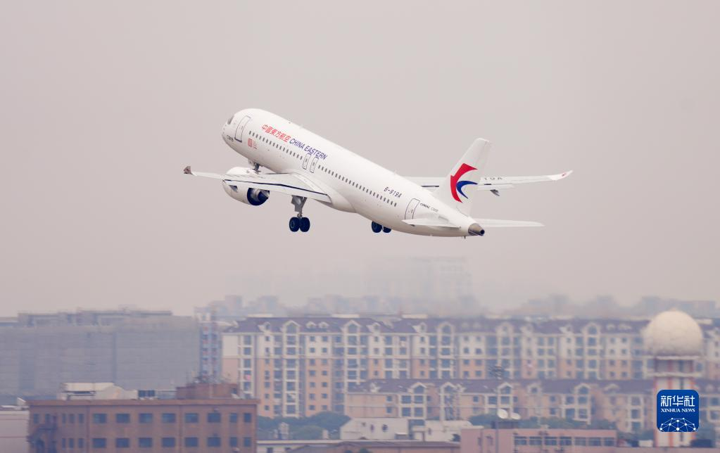 12月26日,國(guó)產(chǎn)大飛機(jī)C919在上海虹橋國(guó)際機(jī)場(chǎng)起飛。新華社發(fā)