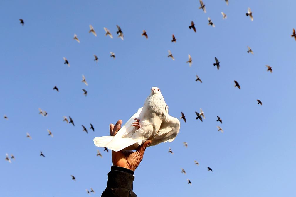 2023年1月29日,在埃及開(kāi)羅,一名養(yǎng)鴿人放飛他的鴿子。新華社發(fā)(艾哈邁德·戈馬攝)