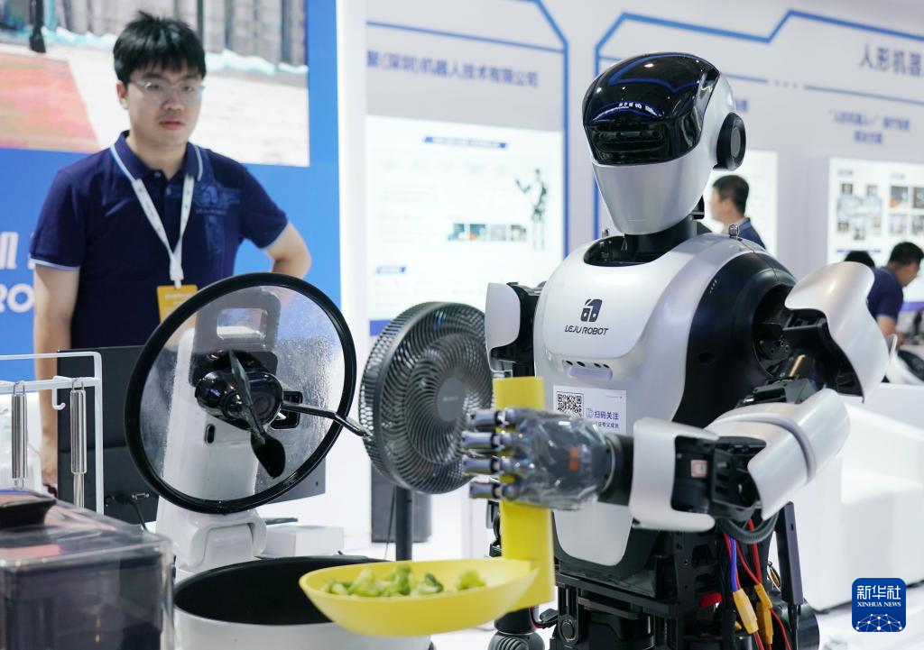 一款人形機(jī)器人在2024世界機(jī)器人大會上炒菜。新華社記者 張晨霖 攝