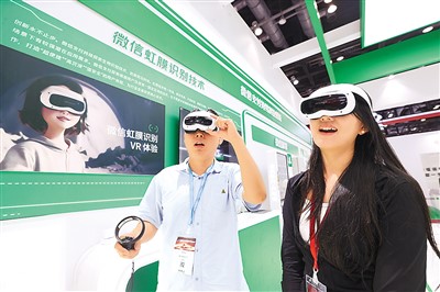 隨著數(shù)字金融領域創(chuàng)新成果不斷投入應用,刷掌支付、虹膜識別支付等支付手段逐步走進居民生活。圖為觀眾在2024中國國際金融展上通過虛擬現(xiàn)實設備體驗微信虹膜識別技術。陳曉根攝(人民視覺)