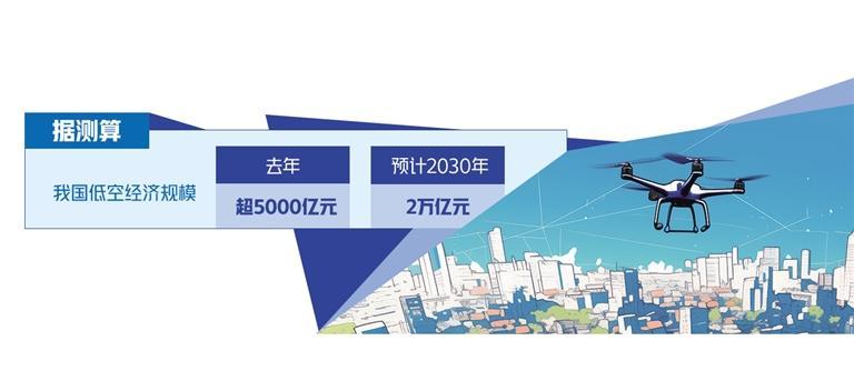 目前,以傳統(tǒng)通用航空和新型無人機產(chǎn)業(yè)為基礎(chǔ)的低空經(jīng)濟在我國正蓬勃發(fā)展。截至2023年底,我國通航企業(yè)達689家,通用機場451個。據(jù)測算,去年我國低空經(jīng)濟規(guī)模超5000億元,預(yù)計2030年有望達到2萬億元。