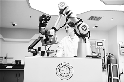 中國科學(xué)技術(shù)大學(xué)一名博士研究生在實驗室調(diào)試機(jī)器化學(xué)家系統(tǒng)“小來”。新華社記者 張端攝