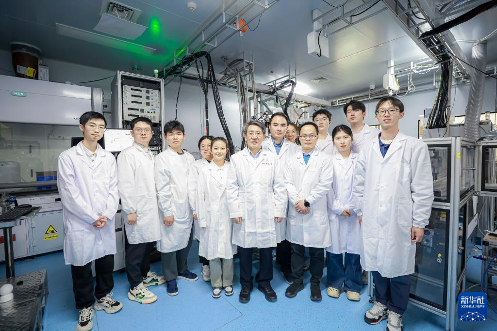圖為薛其坤與研發(fā)團(tuán)隊在實驗室(資料照片)。新華社發(fā)(受訪者供圖)