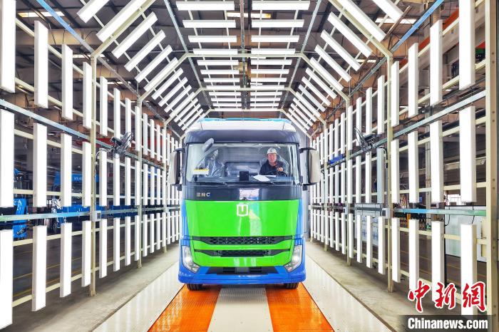 3月5日,中國(guó)首批100輛200KW氫能重卡在天津陸續(xù)下線(xiàn)。記者 佟郁 攝