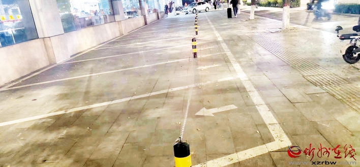 本報(bào)訊 近日,有市民向本報(bào)新聞熱線反映,在位于我市城區(qū)七一北路和團(tuán)結(jié)街交匯處的華美超市門(mén)前,一到晚上,門(mén)前停車(chē)位就被商家用鐵索串聯(lián)起來(lái),既影響通行,又存在安全隱患。