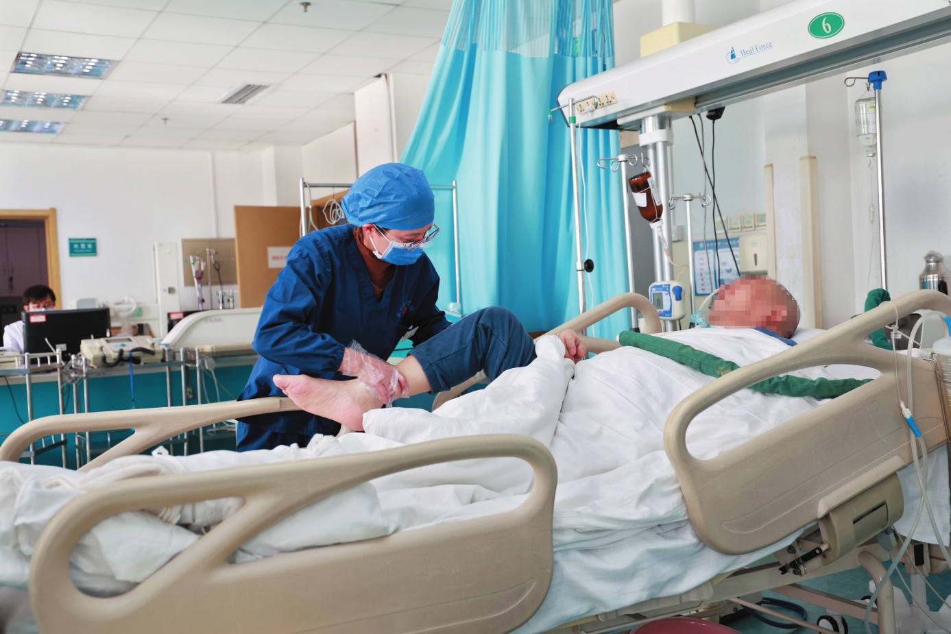 “相比普通病房,ICU護士的工作要更繁瑣,使用到的醫(yī)療器械要更多,面對的突發(fā)事件也多,要隨時做好與‘死神’搏斗的準備?!比挝南家贿吋毿牡馗鼡Q夾在患者手指的氧飽和度儀,避免患者壓到導線,一邊在忙碌間隙告訴記者,“ICU病房不允許家屬陪護,病人的進食、翻身、清洗等所有護理都由護士獨立完成,面對這些瑣碎的細活,護理工作必須要嚴謹細微,不能有絲毫怠慢?!?/p>