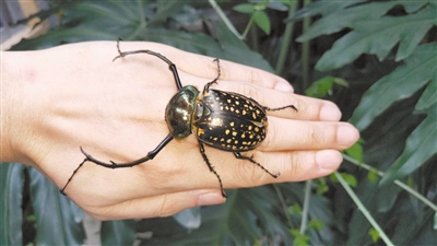 “這種甲蟲的發(fā)現(xiàn)地都是生態(tài)環(huán)境很好的茂密叢林,它的出現(xiàn)可以看做是自然環(huán)境保護(hù)得當(dāng)?shù)囊粋€(gè)標(biāo)志?!壁w力說,體形對(duì)比之下,格彩臂金龜?shù)捏w形比陽彩臂金龜要小一些。陽彩臂金龜一般的體長可以達(dá)到7厘米,而格彩臂金龜?shù)捏w長只有5厘米多。