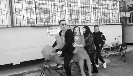 幾天前,這首“騎單車(chē)”歌曲里的情景,在太原市小店區(qū)小店街道杜家寨社區(qū)的一場(chǎng)婚禮上再現(xiàn)——新郎幸福地蹬著單車(chē),后座上,美麗的新娘穿著紅色婚紗,甜蜜地靠在新郎背上,他們穿過(guò)社區(qū),在沿途眾多鄉(xiāng)鄰、親友的喝彩聲、祝福聲中,舉行了一場(chǎng)特別的單車(chē)婚禮。