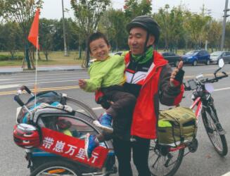幾個(gè)月前,湖南株洲45歲的羅新華做出一個(gè)很多人難以理解的決定,他要騎自行車帶著三歲半的兒子高高進(jìn)行一次長(zhǎng)達(dá)數(shù)千公里的長(zhǎng)途騎行。10月2日出發(fā),目前他已騎行1200多公里,途經(jīng)湖南、湖北、江西、安徽,到達(dá)江蘇境內(nèi)。沿途,高高見(jiàn)到了大自然中很多新鮮事物,而羅新華也借這次機(jī)會(huì)第一次與兒子長(zhǎng)時(shí)間朝夕相處。