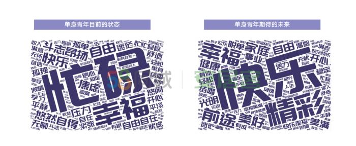 而對(duì)于未來,單身青年們最希望自己能“快樂”,追求“自由”“精彩”的人生,期望擁有“美滿”“幸?!钡摹扒巴尽?。(完)