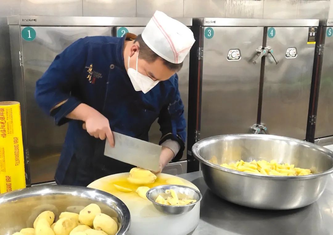 市級(jí)方艙醫(yī)院?jiǎn)⒂靡詠?lái),作為抗疫主力軍的護(hù)航者,后勤是這場(chǎng)疫情保衛(wèi)戰(zhàn)的關(guān)鍵一環(huán)。為做好方艙醫(yī)院運(yùn)行后的餐飲、生活用品及工作人員的住宿等后勤保障服務(wù)工作,忻州市級(jí)方艙醫(yī)院后勤保障工作組夜以繼日,辛苦奉獻(xiàn),始終和醫(yī)療團(tuán)隊(duì)從黑夜到黎明奮戰(zhàn)在一線。18日中午12點(diǎn),記者來(lái)到忻州市方艙醫(yī)院大門口看到,方艙內(nèi)外保障組工作人員正在交接餐食,一包包盒飯、水果從餐車拿出來(lái)放到三輪車上,然后由艙內(nèi)后勤保障組工作人員送到方艙內(nèi)醫(yī)護(hù)人員的手中。