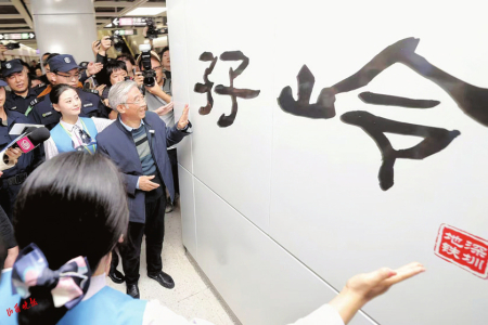 崗廈北站是深圳交通網(wǎng)絡(luò)中的重要節(jié)點(diǎn),設(shè)計(jì)獨(dú)具匠心,通過(guò)天井將陽(yáng)光引入地下,科技感和藝術(shù)性兼具,被譽(yù)為“深圳之眼”。在崗廈北站樞紐的“深圳之眼”下,姥爺即興揮毫,寫下“情滿鵬城”“厚德載運(yùn),深鐵為民”。墨跡未干,照片已登上熱搜。