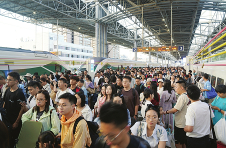 暑運(yùn)期間,探親流、旅游流、學(xué)生流疊加,全國(guó)鐵路運(yùn)輸持續(xù)保持高位運(yùn)行。這個(gè)暑運(yùn),旅客出行有點(diǎn)“火”。 新華社發(fā)