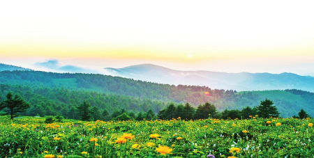 五臺山的生態(tài)魅力,始于其獨特的“垂直生命帶”。從山腳的農(nóng)墾帶向上,山地落葉闊葉灌叢、針葉闊葉混交林、寒溫性針葉林、亞高山灌叢依次鋪展,最終在山頂形成亞高山草甸,構(gòu)成“一山存四季,十里不同天”的生態(tài)奇觀。作為華北地區(qū)典型的山地草甸,盛夏時節(jié)金蓮花、苔草等幾十種植物肆意綻放,宛如金色星河落滿翠綠地毯。