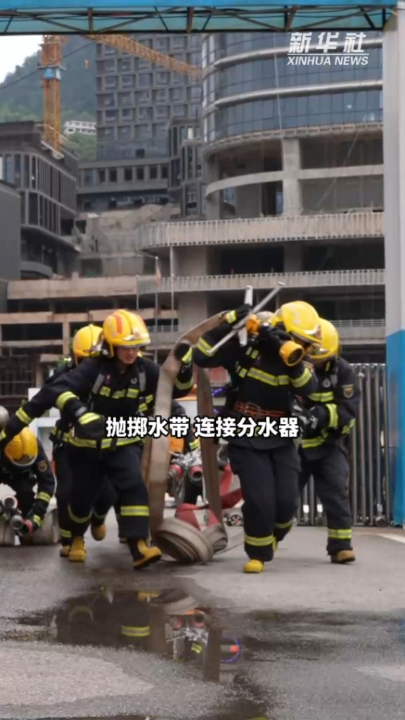整理內(nèi)務(wù)、體能訓(xùn)練、專業(yè)訓(xùn)練都是日常要做的,穿著40多斤重的裝備,身手十分的嫻熟。拋擲水帶、連接分水器、架設(shè)消防梯、水槍連接水帶這些動作行云流水,絲毫不拖沓。