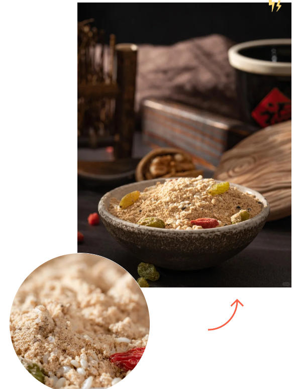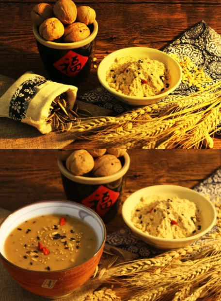這款小吃由五谷雜糧粉和堅果炒制而成,加入開水即可飲用,無論是搭配油條還是咸菜,都別有一番風(fēng)味。