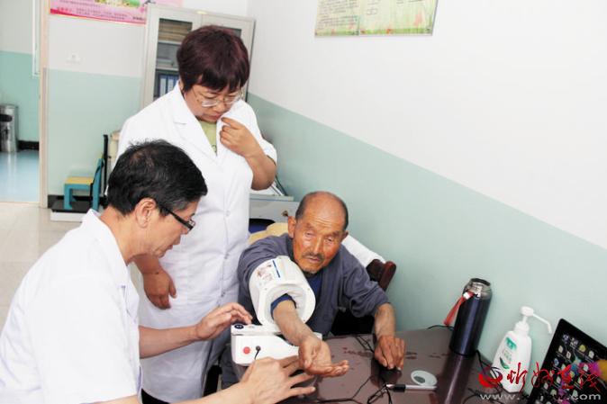 王俊秀正在給王老漢檢查身體